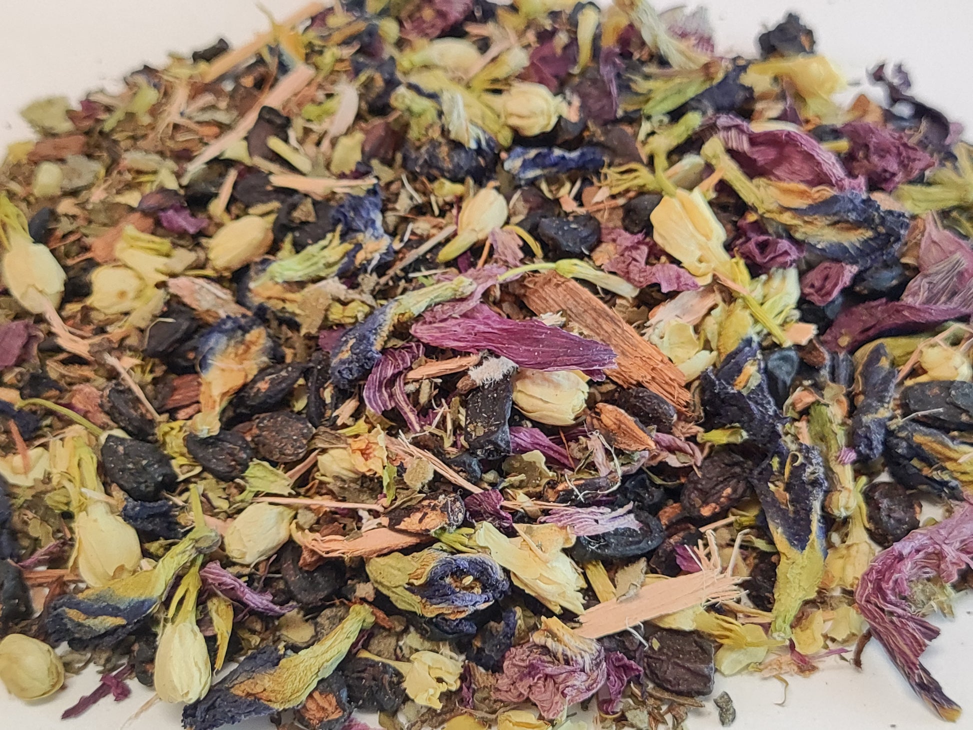 With the flora of jasmine, violet, and blue butterfly. The healing bark of the mighty white willow tree. Ginsend from Siberia for congnitive function, and with a hint of mint, just how the wizard likes it.