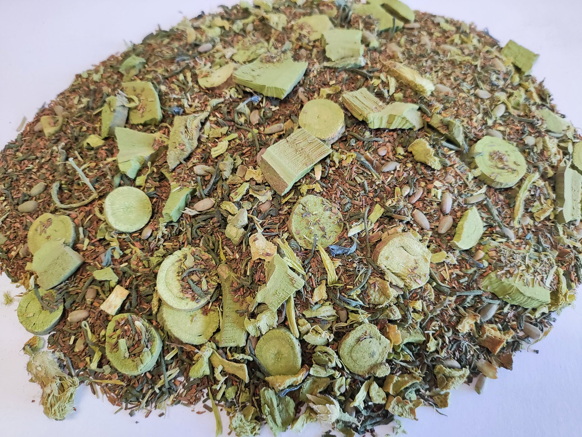 This earthy elixir features an invigorating blend of reishi mushroom, roots of licorice and marshmallow, honeybush, milk thistle, rich rooibos, hints of vanilla, lemon zest, and a dusting of matcha powder. All these components work together to improve immunity, gut, heart, and skin health, detoxify the body, and raise energy levels.